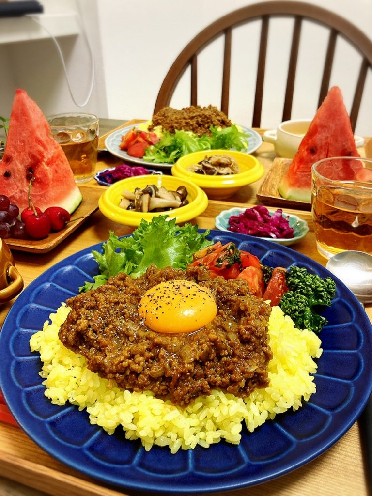 お肉と野菜をバランスよく食べられるドライカレー♡