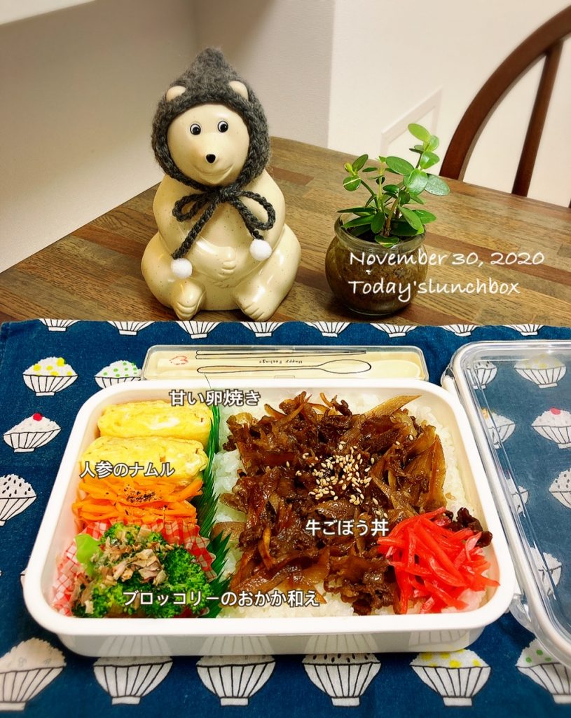 照り焼きチキンと牛ごぼうは前日の残りです♡