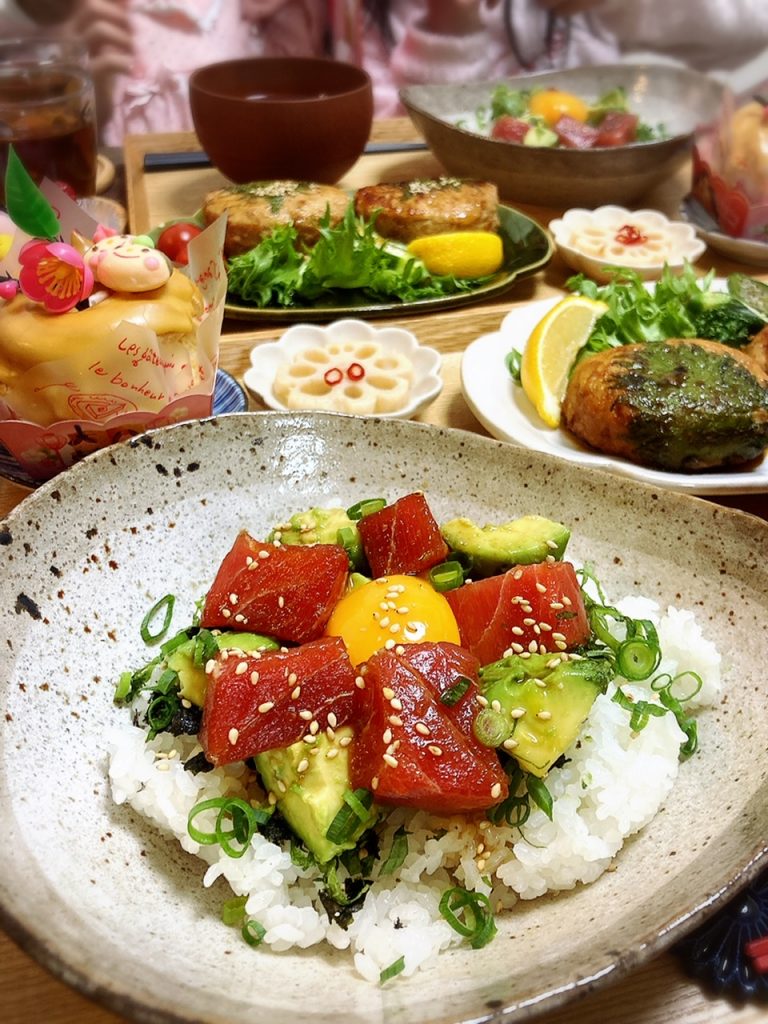 漬けたマグロ、アボカド、卵黄の間違いない組合せ♡