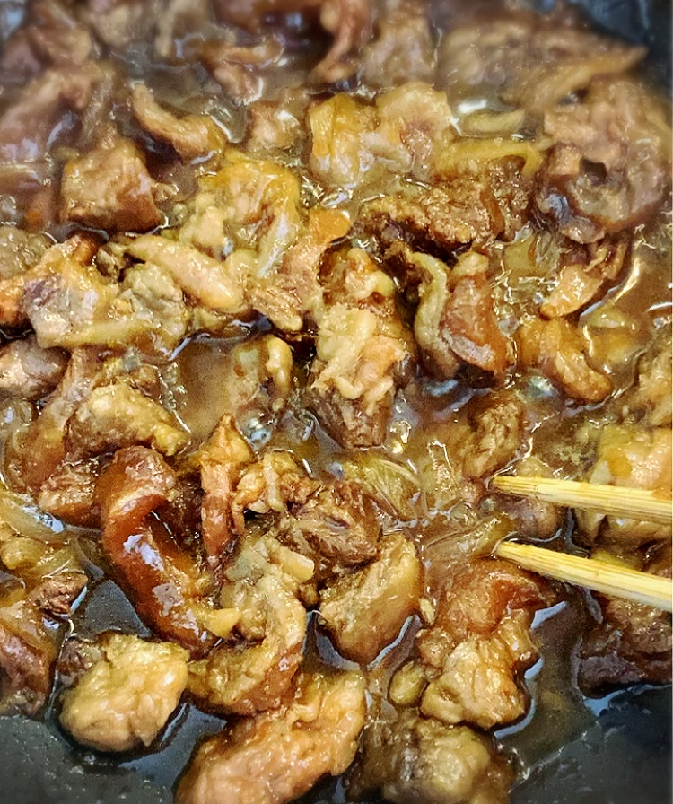 今日は「牛すじ肉と玉ねぎの甘辛煮込み」の