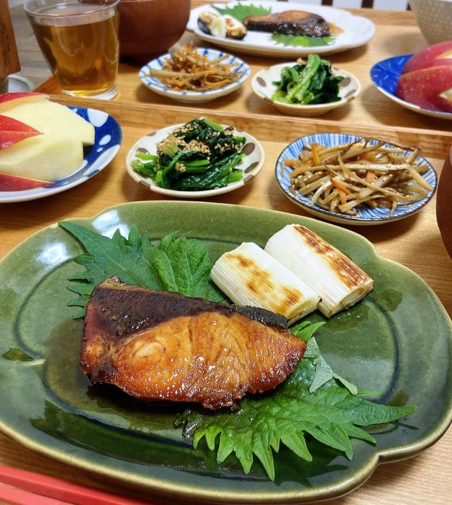 ☝️鰤を焼く前にふり塩で臭みを取ります。