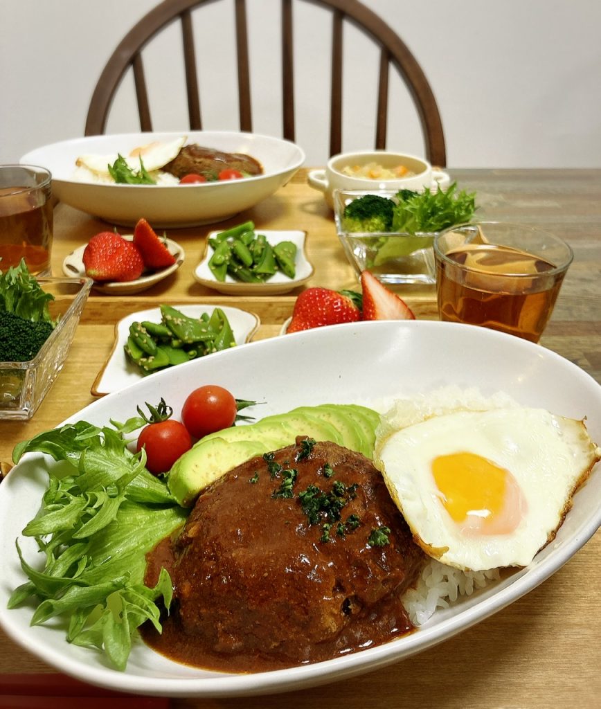 目玉焼きとアボカドも添えてロコモコ丼♡
