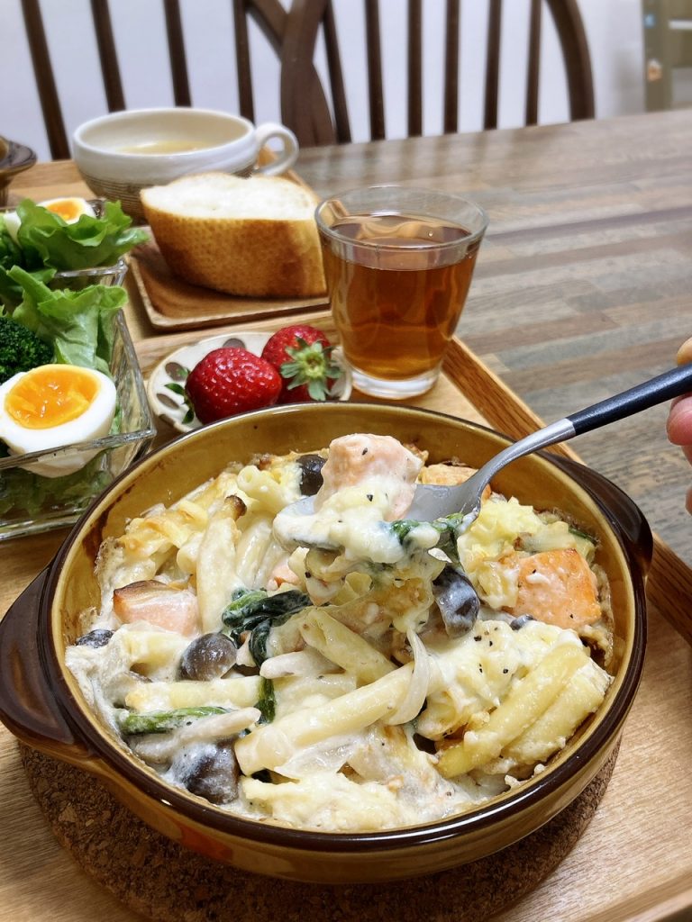 「骨抜き不用!サーモンとほうれん草のグラタン」の