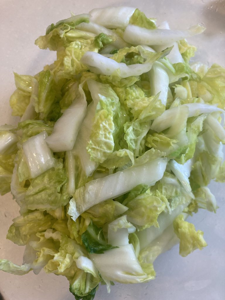 1.白菜は1cm幅に切り、ボウルに入れる。