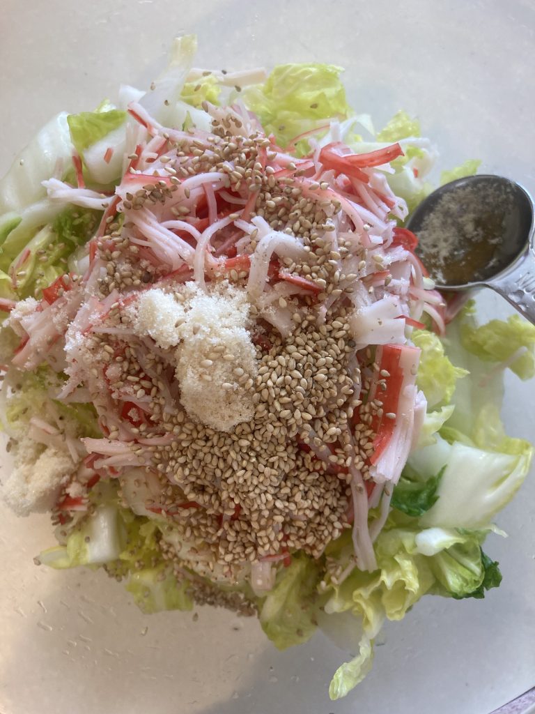 【やみつき!】白菜とカニカマのポン酢サラダ